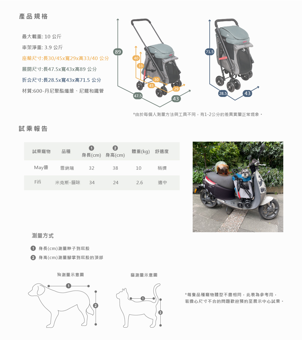 寵物袋尺寸:45 x 29 x 34/40 公分